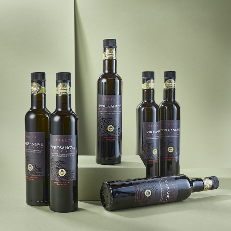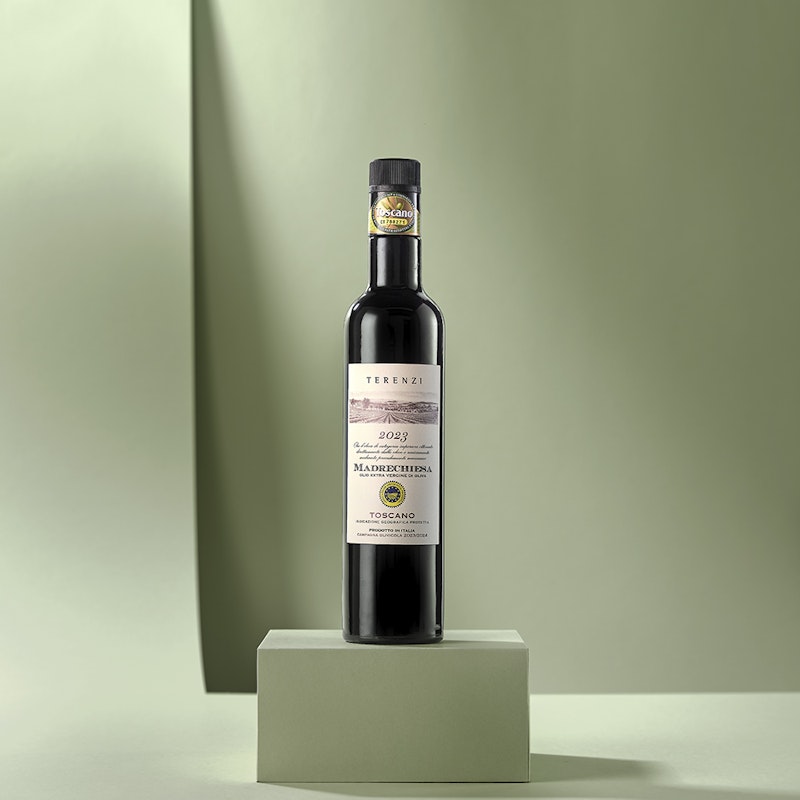 At Terenzi, we also produce extra virgin olive oil from thousands of century-old trees cultivated over 14 hectares. The olives are harvested by hand, and pressed at our estate mill to ensure top quality. We offer two labels: Madrechiesa, from Moraiolo and Maurino cultivars, and Purosangue, a blend of Frantoiano, Moraiolo, and Leccino, both ideal for enhancing your favorite dishes.