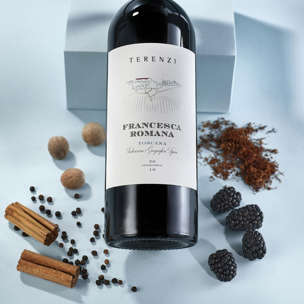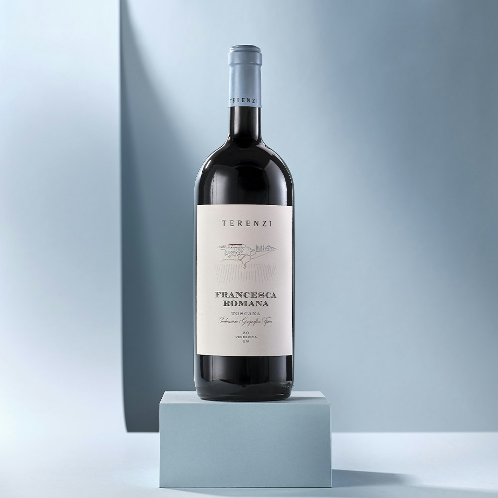 Assemblaggio di cabernet franc, cabernet sauvignon e merlot, Francesca Romana è un’interpretazione esemplare dei tre vitigni internazionali. Rivela grande sapienza nell’estrazione, eleganza espressiva e precisione aromatica. Il naso è guidato dai profumi di spezie e frutta rossa matura, il palato è avvolgente e setoso, con un finale persistente.
