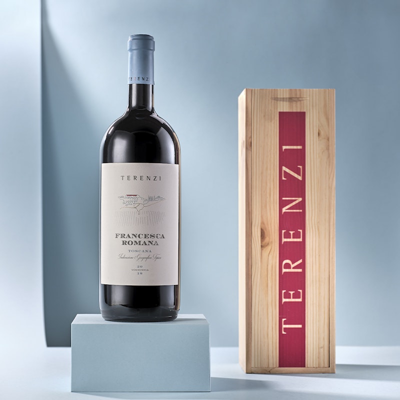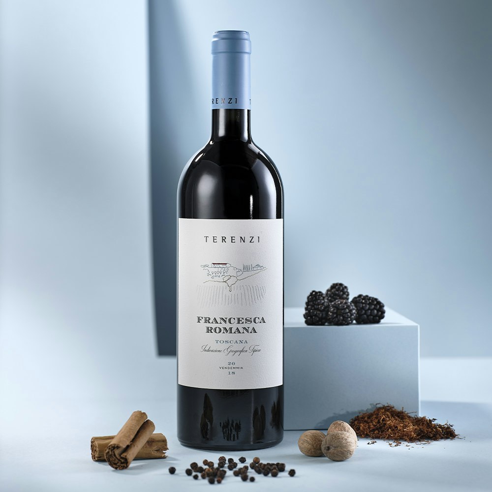 Francesca Romana is a masterful blend of Cabernet Franc, Cabernet Sauvignon, and Merlot, showcasing these three international grape varietals in an exemplary way. The winemaking skill shines through in the precise extraction, resulting in expressive elegance and aromatic focus. On the nose, enticing aromas of spice and ripe red fruit lead the way. The palate is enveloping and silky, with a finish that lingers pleasantly.